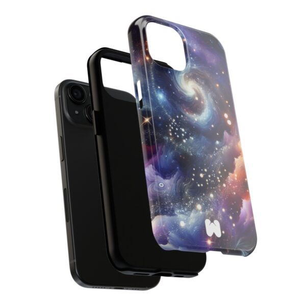 “Unveil the celestial charm of your phone with our Cosmos Phone Case. A stunning abstraction of the universe, its design boasts harmoniously dancing galaxies, stars, and nebulous clouds in a grand ballet across the inky expanse. Deep blues, purples, gold, and silvers evoke the boundless splendor of cosmos. #CosmicPhoneCase #UniverseDesign #GalaxyCase #StellarStyle #DeepBlue #PurpleHues #ShimmerGold #SilverHighlights #PhoneFashion #CosmicElegance”