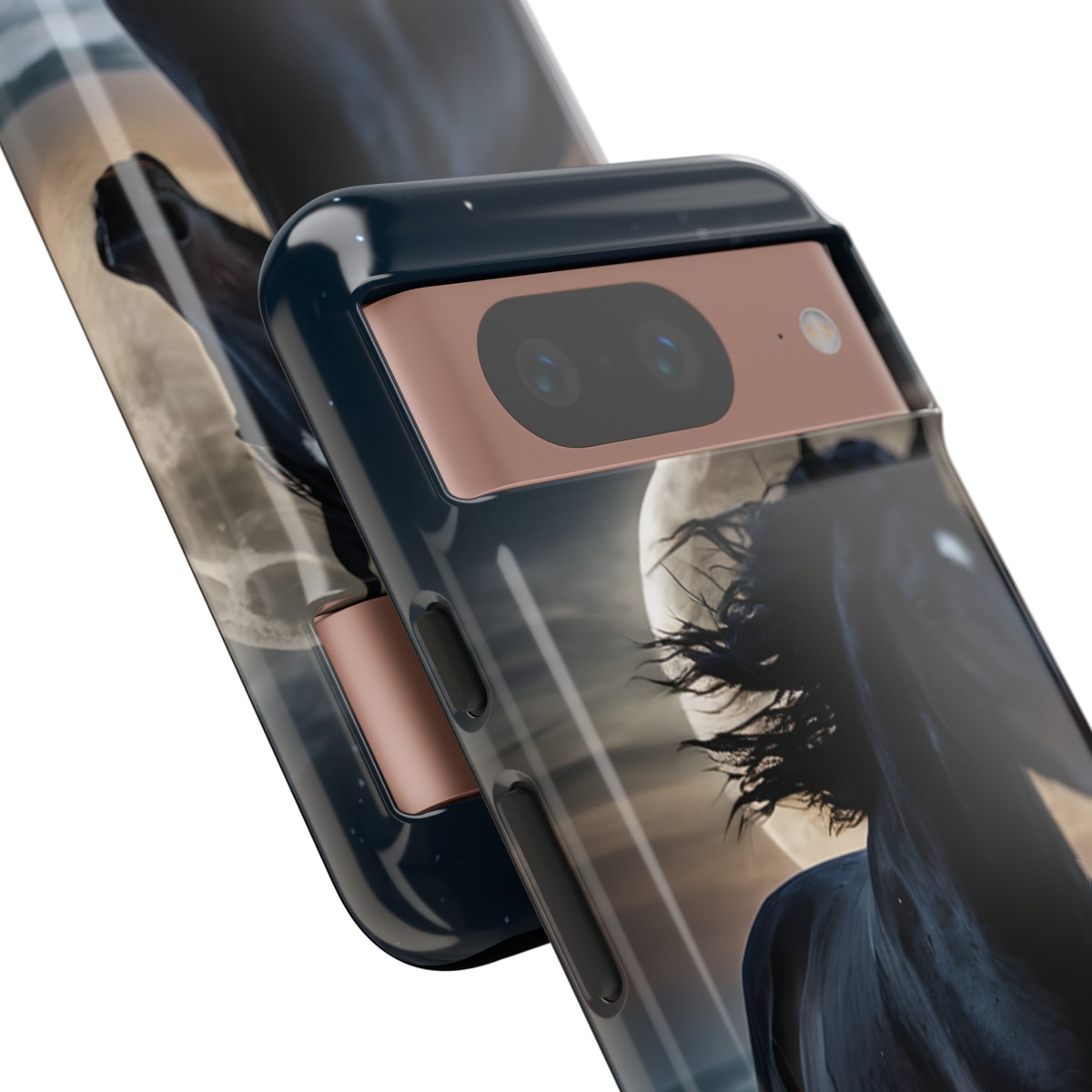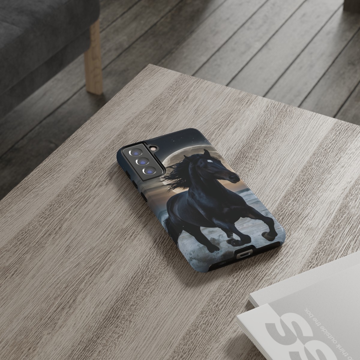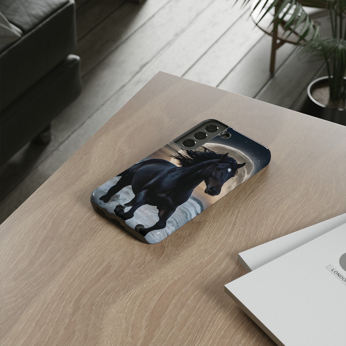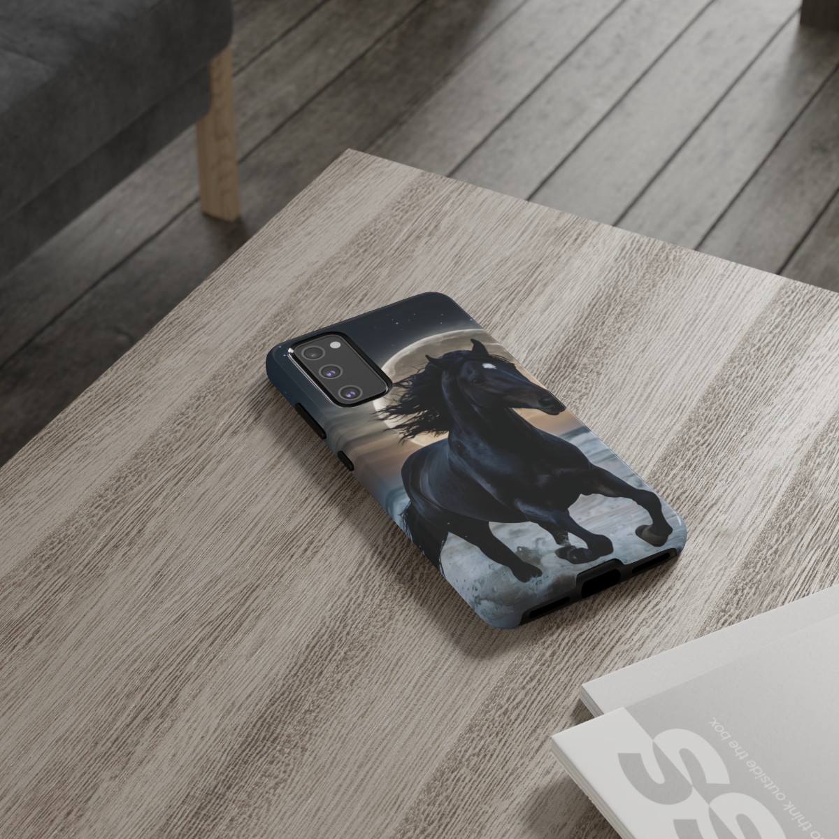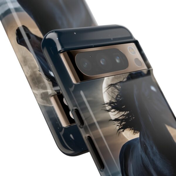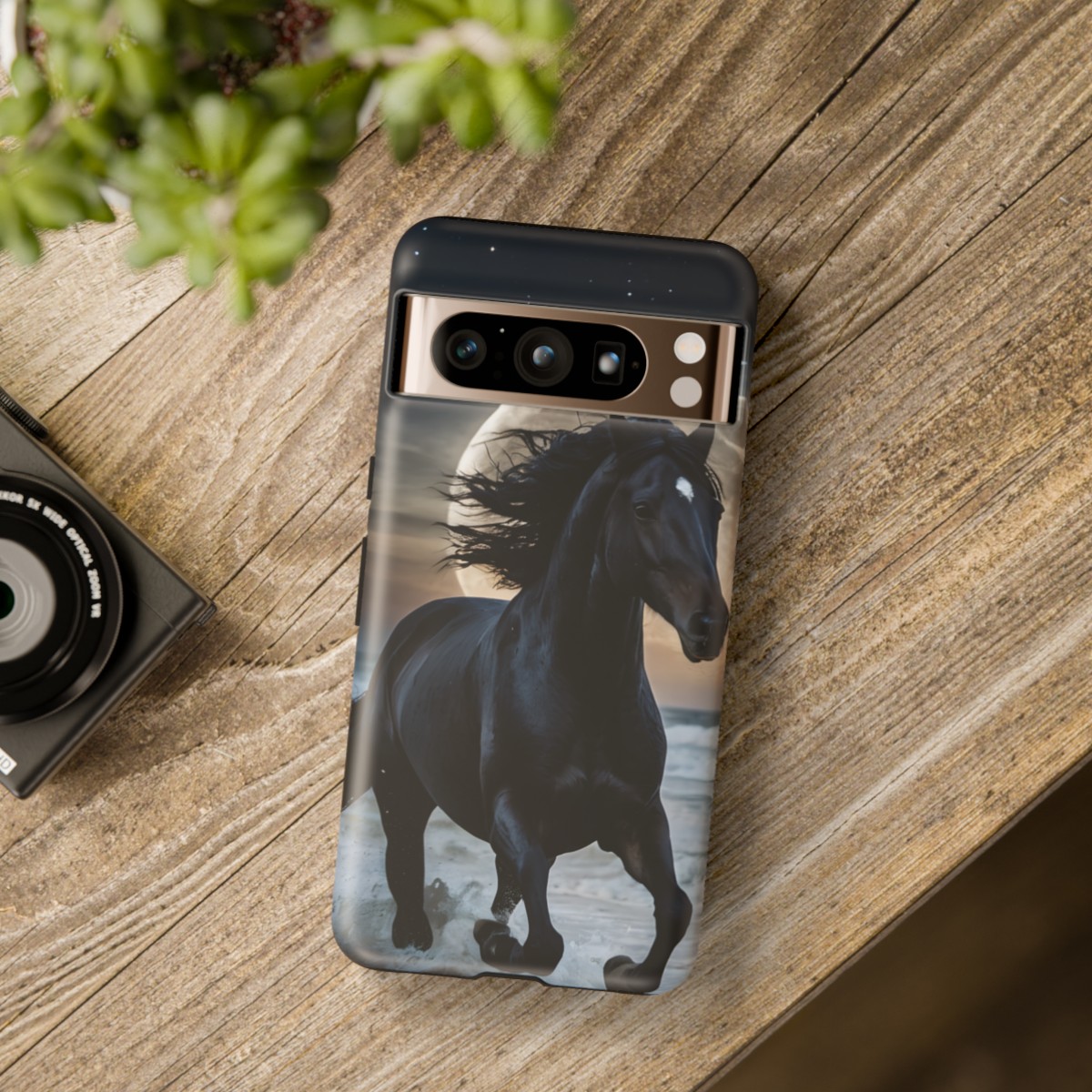 Bold and Beautiful Design: Experience the elegance of the night with our Majestic Midnight Stallion Phone Case. This exquisite piece boasts a stunning, lifelike portrayal of a powerful stallion in motion, set against the tranquil backdrop of a moonlit shore.
