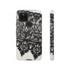 The Black Lace Pattern phone case is swathed in a compelling pattern, beautifully styled to mirror the timeless elegance of classic black lace. The delicate, detailed lace pattern etched against a deep black backdrop is masterfully crafted to stand out, adding a layer of refinement and sophistication. Each design element harmoniously conveys a tale of artistry and elegance that’s nothing short of captivating.