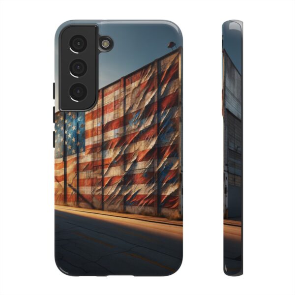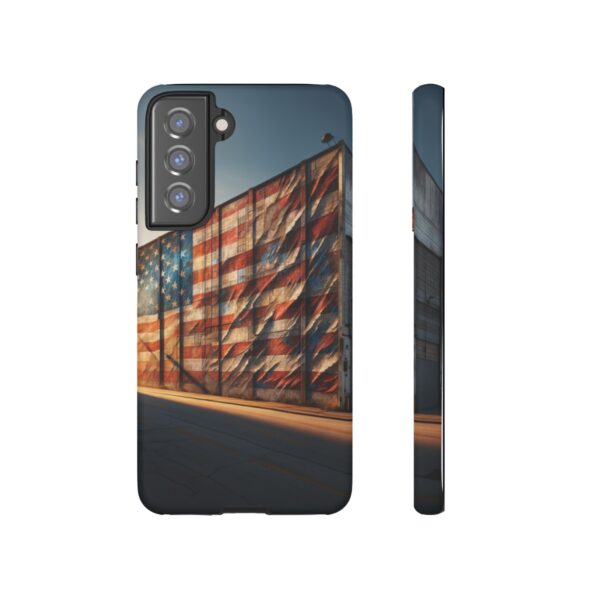 #phonecase #USAPride #vintage #mural #warehouse #distressedflag #patriotism #nostalgia #iphone #galaxy #pixel #robust #custommade #wirelesscharging #glossy #matte