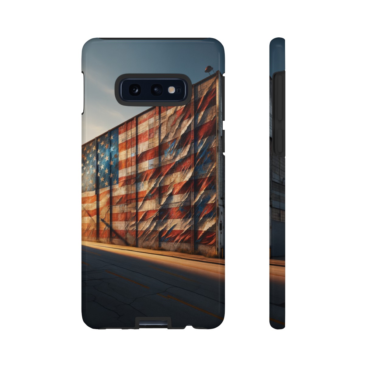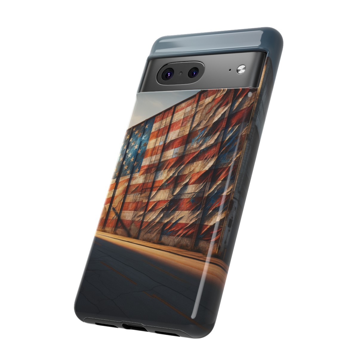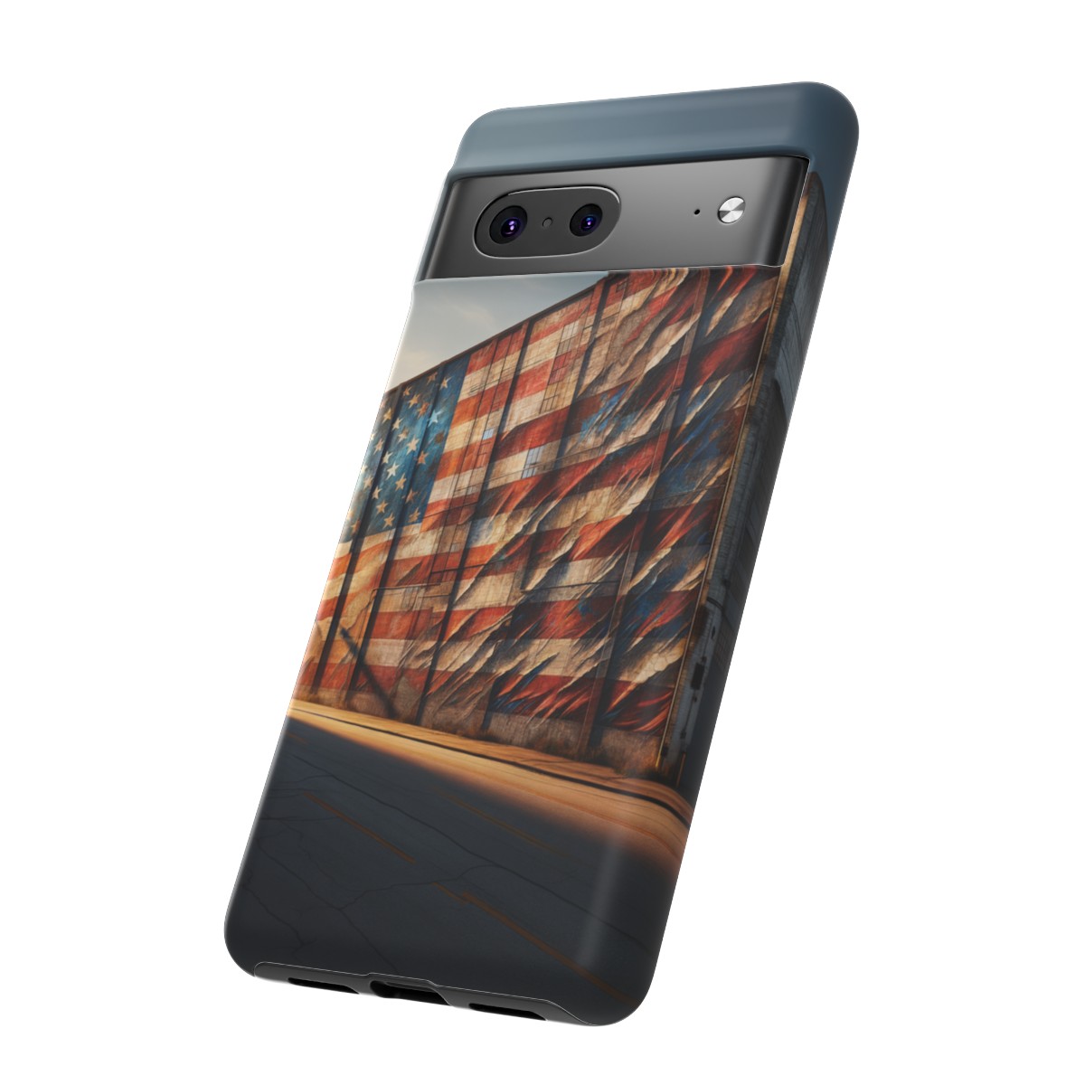 #phonecase #USAPride #vintage #mural #warehouse #distressedflag #patriotism #nostalgia #iphone #galaxy #pixel #robust #custommade #wirelesscharging #glossy #matte