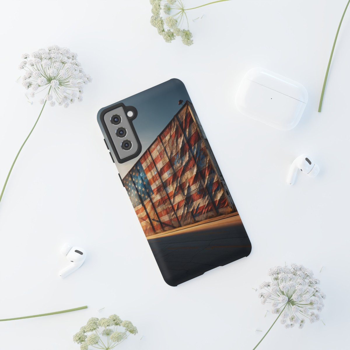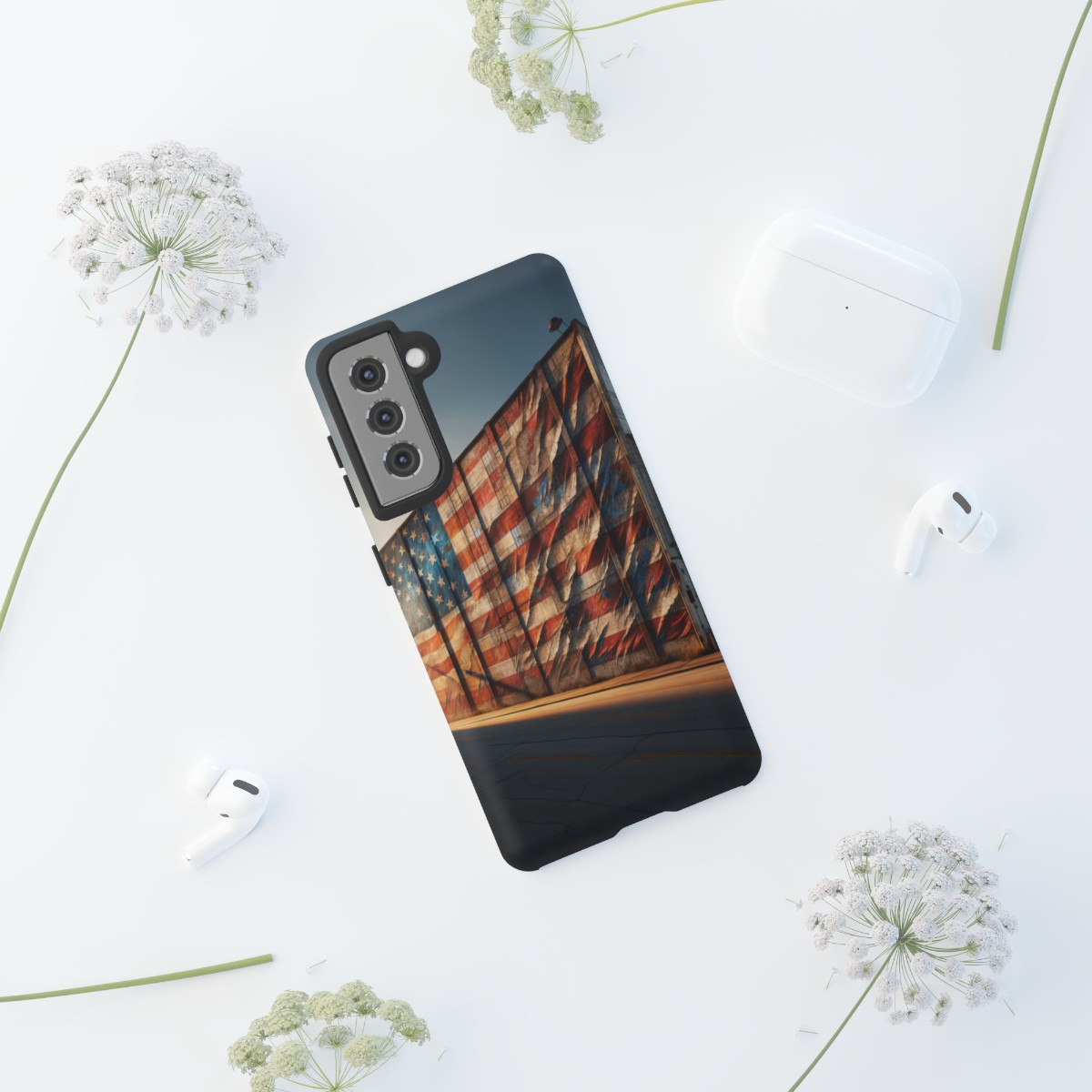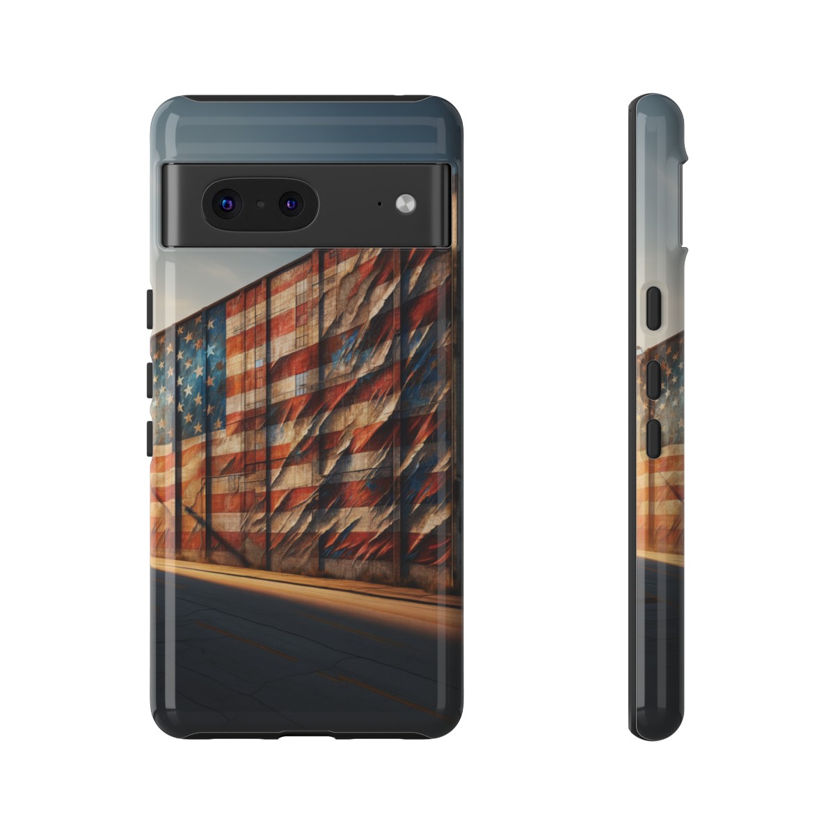 #phonecase #USAPride #vintage #mural #warehouse #distressedflag #patriotism #nostalgia #iphone #galaxy #pixel #robust #custommade #wirelesscharging #glossy #matte