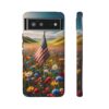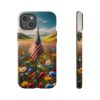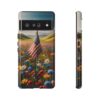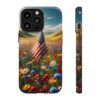 The persistent USA Flag in Wildflowers design has a small and faded USA flag standing proud in the field of intricate wildflowers. This subtle representation of strength and resilience adds an element of timeless elegance to the case, making it a sure to turn heads and spark conversations.