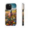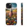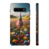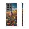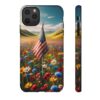 Your phone isn’t just a device; it’s an extension of you! So, why not dress it up in a phone case that mirrors your personality? Our ‘Persistent USA Flag in Wildflowers’ designs serve as a symbol of hope and perseverance while offering immaculate protection for your phone.